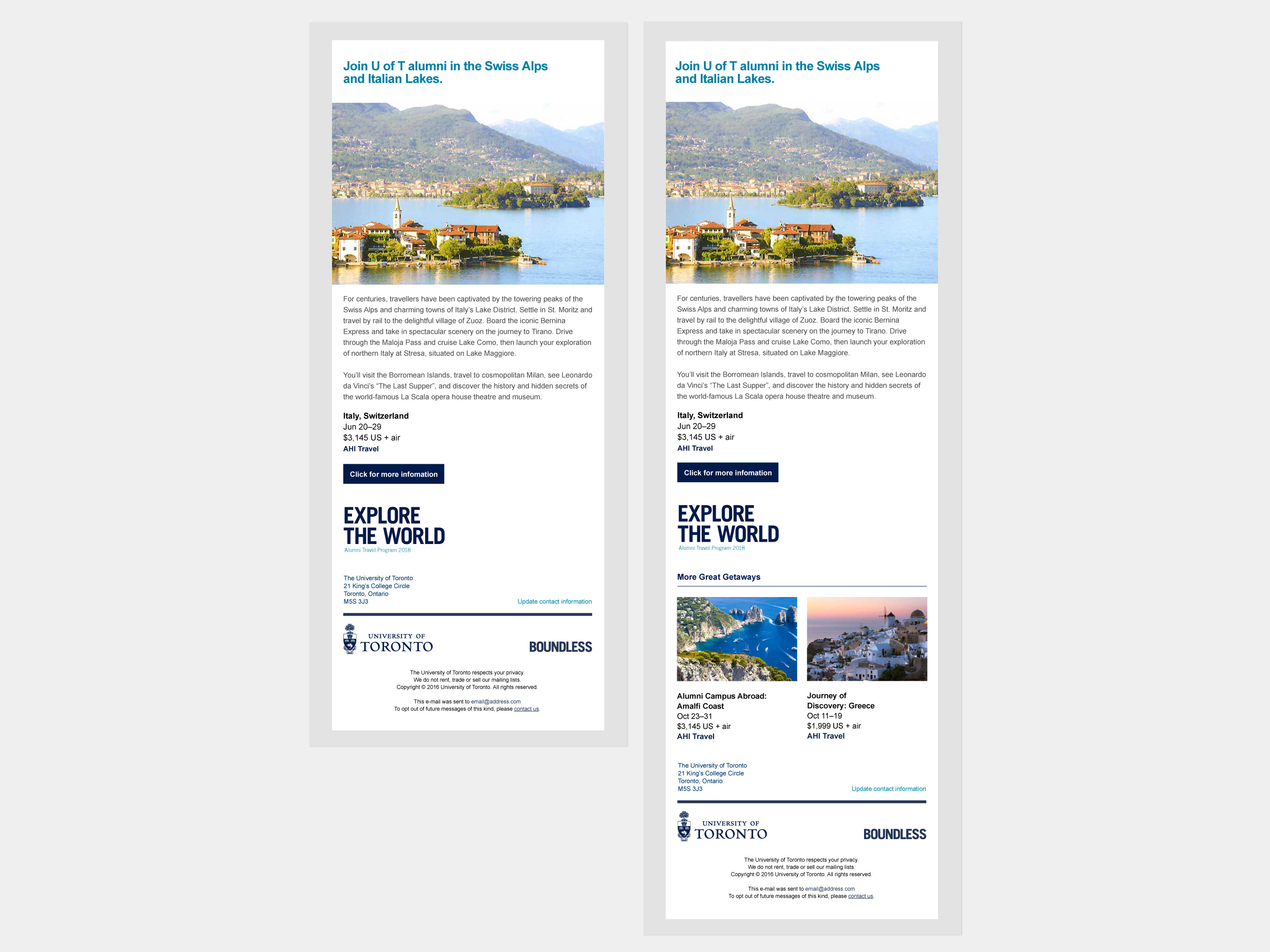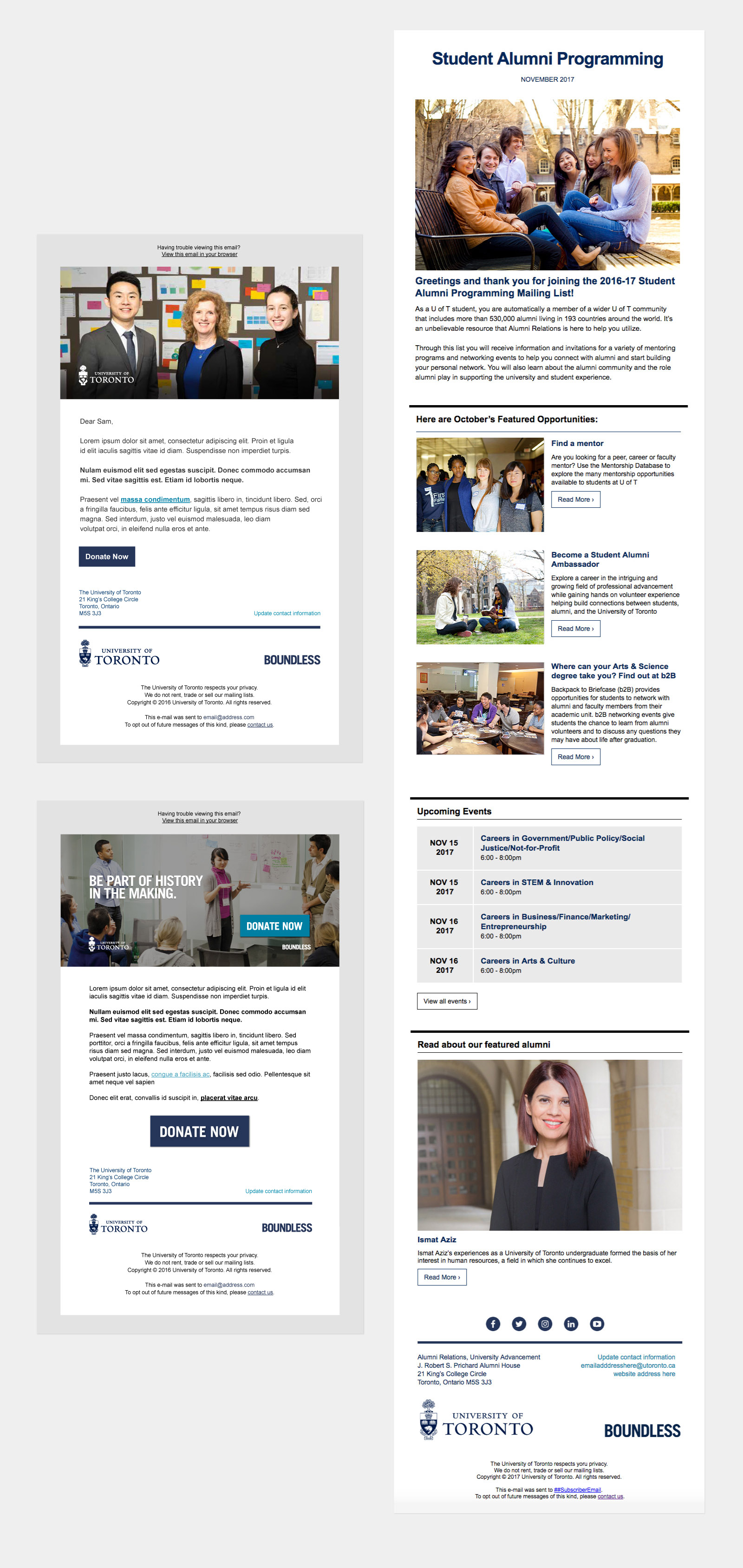 In addition to revamping the Alumni website, I was tasked with designing email campaigns, eblasts, newsletters, landing pages, social media graphics and interactive Google Ads.